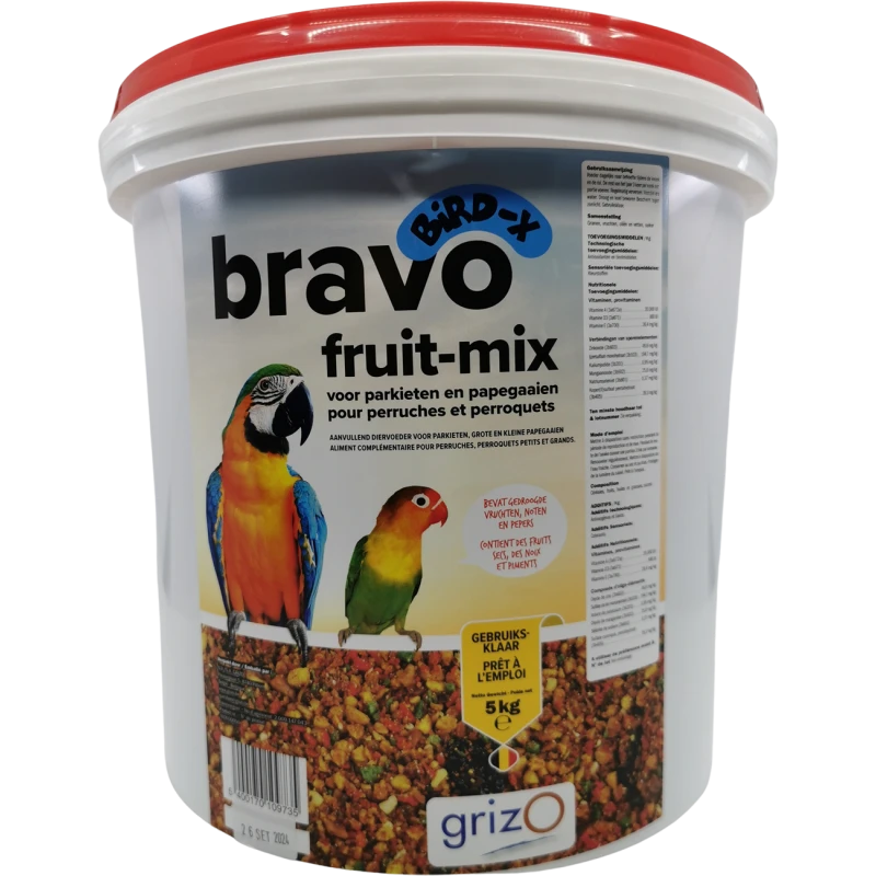 Bravo Fruit Mix grossier pour perruches et perroquets seau/5kg – Bird-X