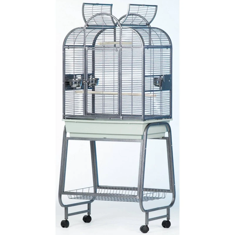 Livrée avec 2 perchoirs et 3 mangeoires.