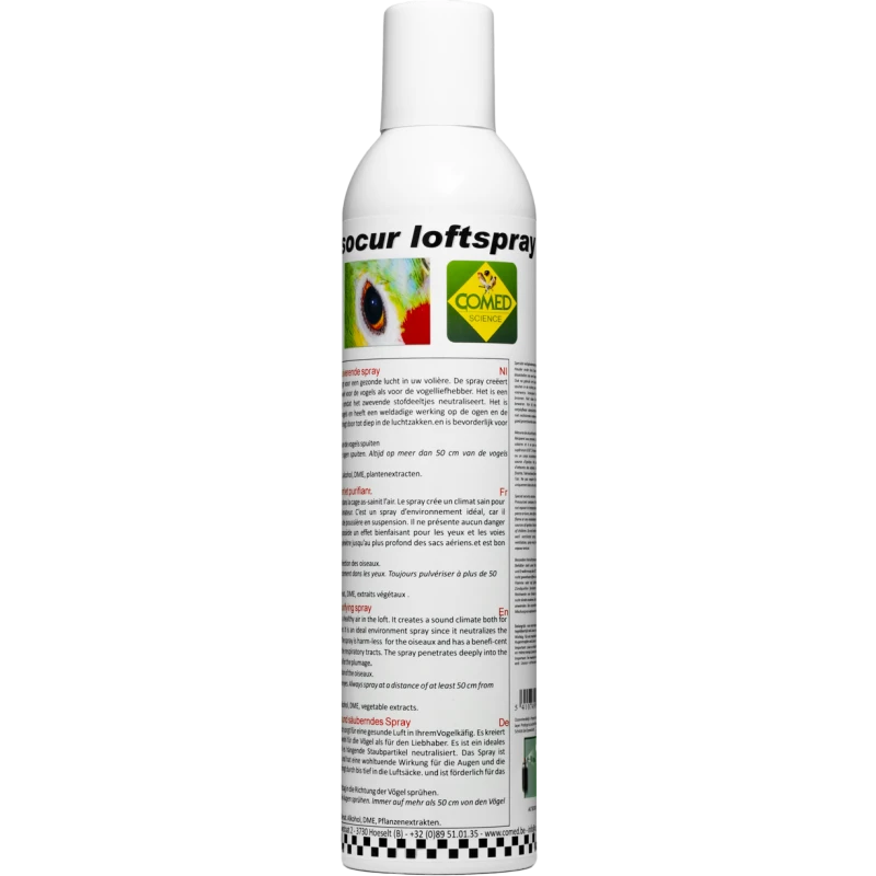 - Lysocur Loftspray ne présente aucun danger pour les oiseaux et il possède un effet bienfaisant pour les yeux et les voies respiratoires. L’aréosol pénètre jusqu’au plus profond des sacs aériens.