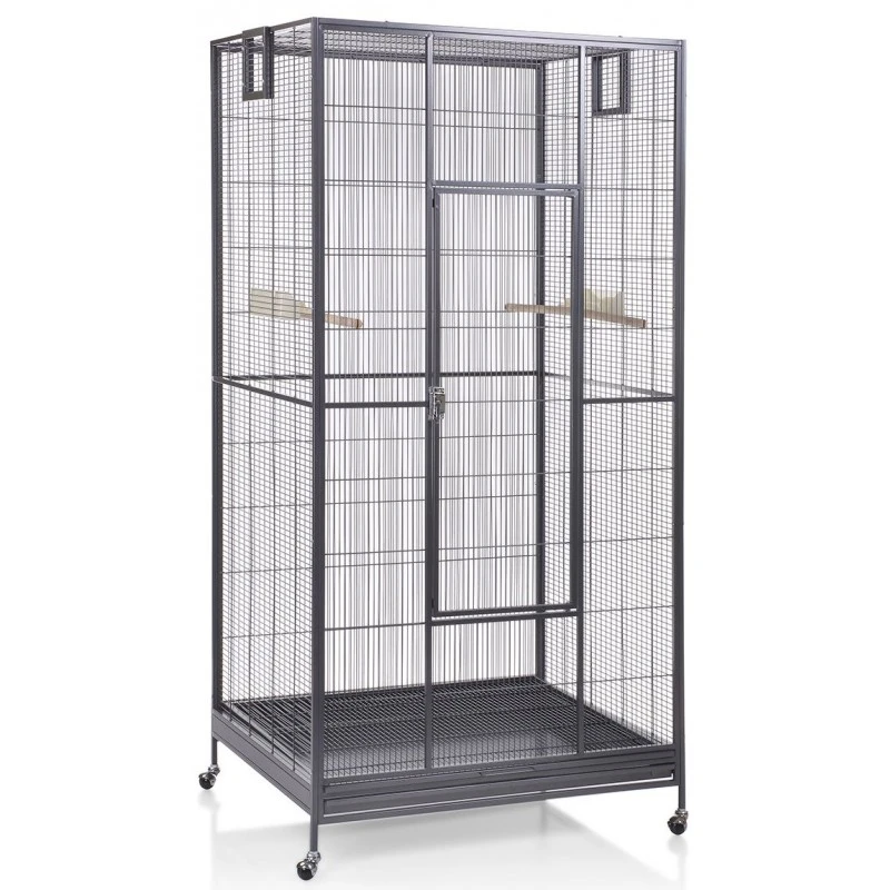 Le Sydney offre suffisamment d’espace pour les pinsons, perruches, petits perroquets & co. Grâce au tiroir à déjections coulissant et aux roulettes stables, le Sydney est également très facile à nettoyer. La livraison comprend deux bols en plastique pour la nourriture et l’eau, ainsi que des perchoirs pour la configuration initiale. Grâce à la porte spacieuse, chaque coin de la cage est facilement accessible. Le Sydney I dispose également d’une « porte d’élevage » pour fixer un incubateur ou un bain public !