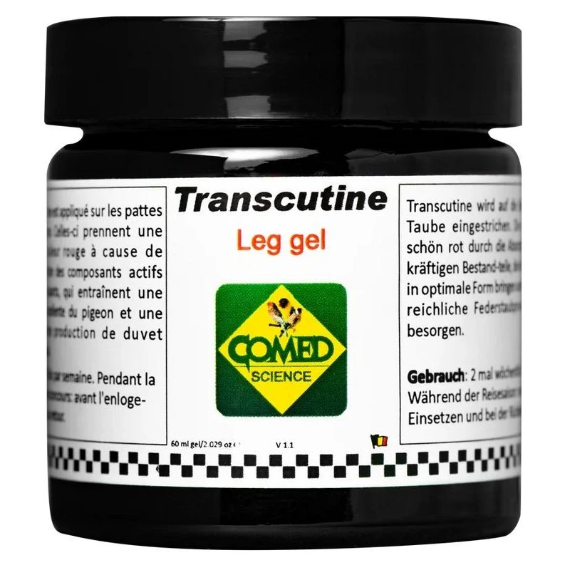 Transcutine est appliquée aux pattes de l’oiseau. Les substances aromatiques puissantes sont fortement absorbées et les pattes obtiennent par la meilleure circulation une couleur rouge vif.